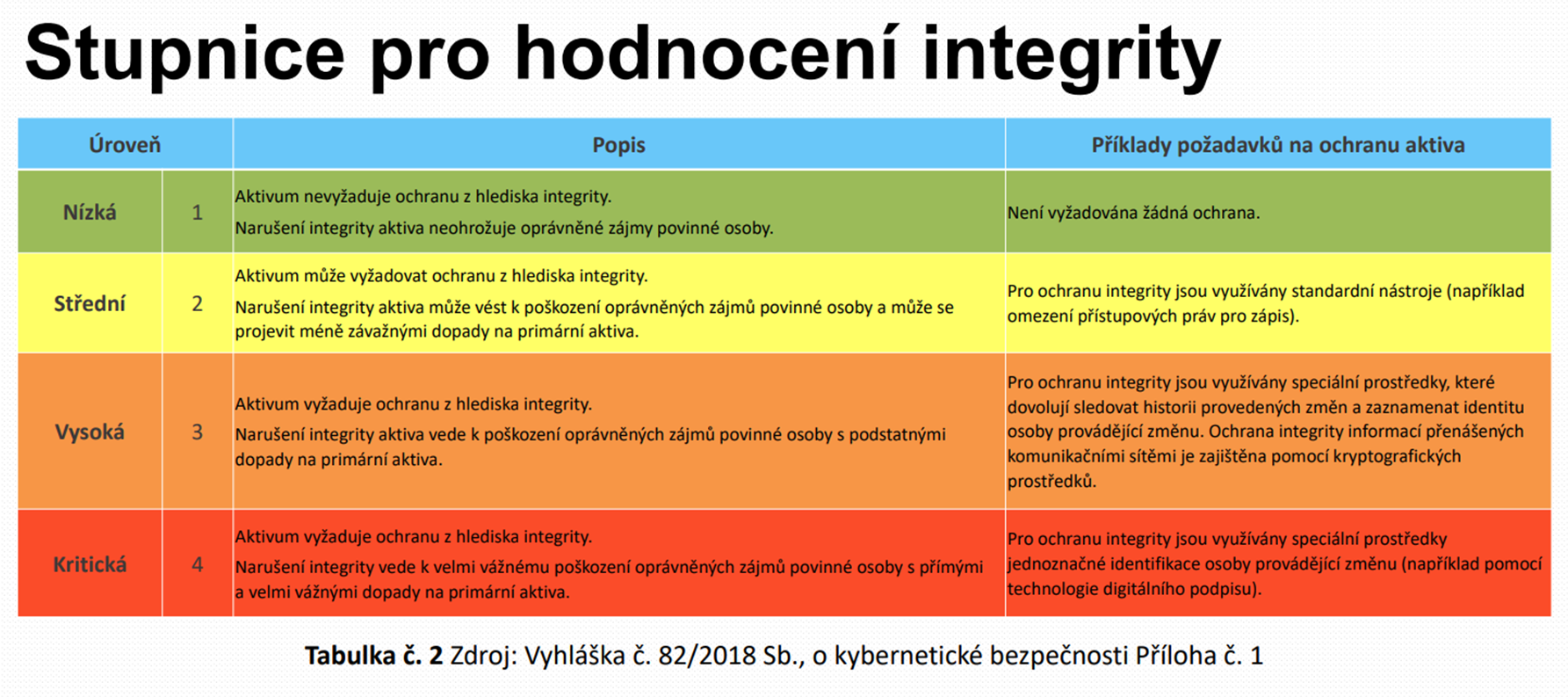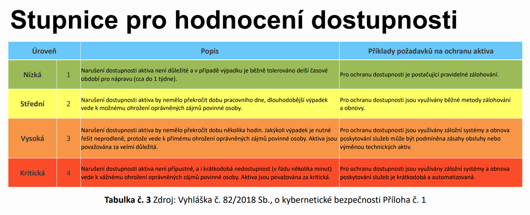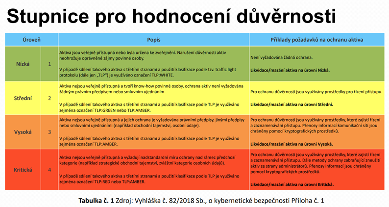 - hodnotu aktiva (zejména z pohledu důvěrnosti,