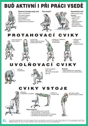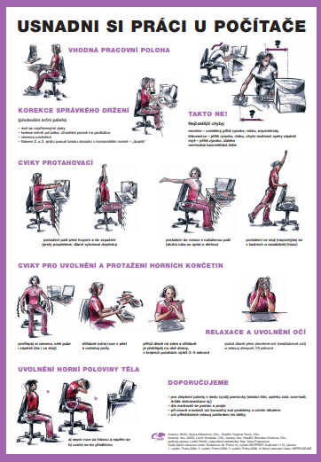 Dbejte na své zdraví a prevenci úrazů při jakékoli práce vsedě, nejen při práci u počítače. Důležitý je správný sed a kompenzační cviky.