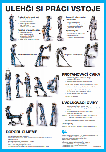 Také pro práci vstoje existují vhodné polohy a cviky pro prevenci zdravotních potíží a úrazů.