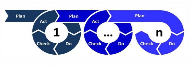 Naplňováním PDCA cyklu dochází k dosažení kontinuálního zlepšování ISMS v organizaci: